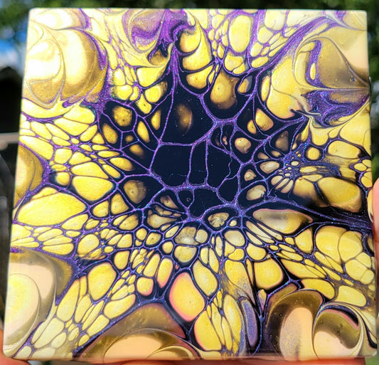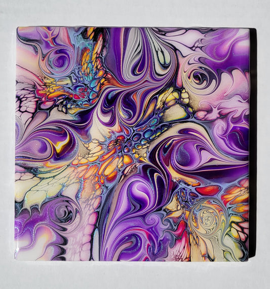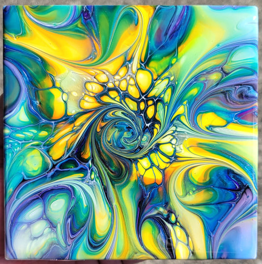 Fluid Art on a 6 inch tile/Coaster with Cork Bottom