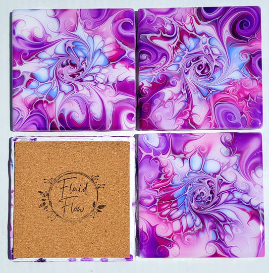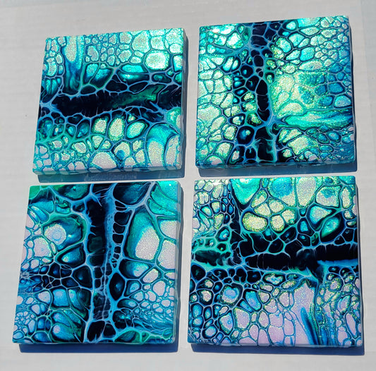 Handmade Fluid Art Tile Coasters Set of 4