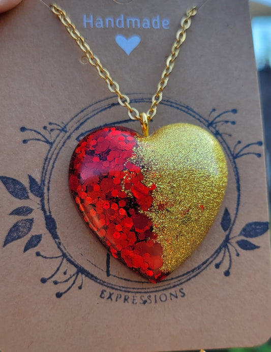 Handmade Sparkling Red and Gold Heart Pendant with Gold 20 Inch Necklace Chain