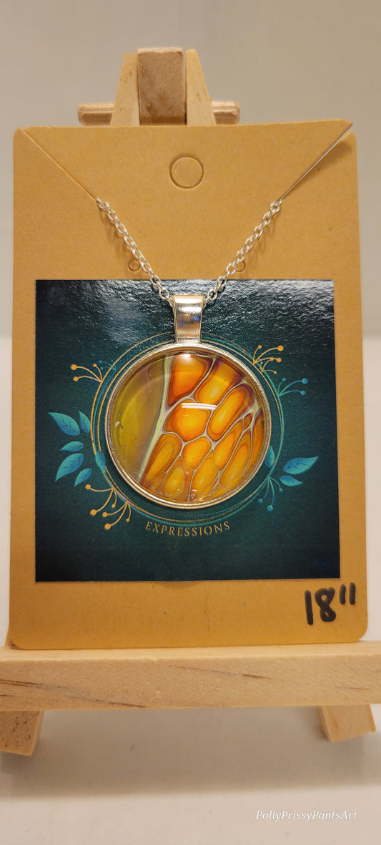 Handmade Fluid Art Pendant with 18 inch silver plated necklace chain