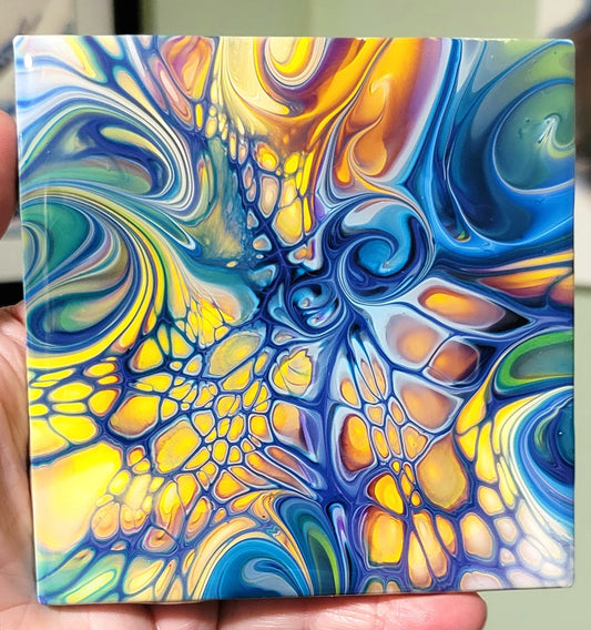 Sold outFluid Art Bloom on 4.25 inch tile