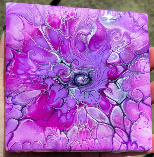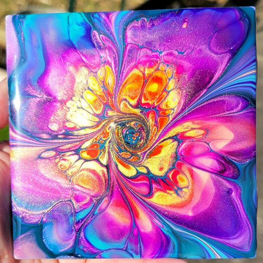 Fluid Art Bloom on a 4.25 inch Tile/Coaster with Cork Bottom