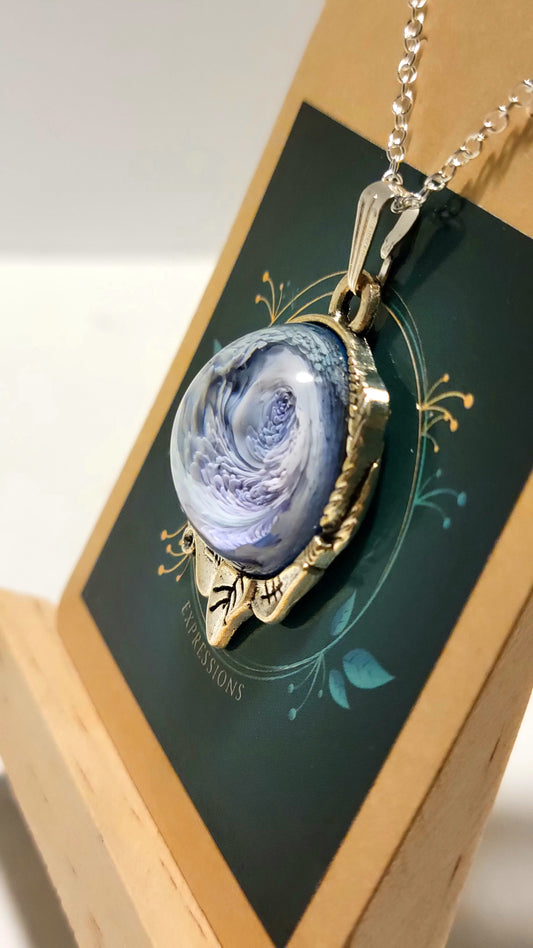 Handmade Resin Art Pendant with 20-inch sterling silver necklace chain.