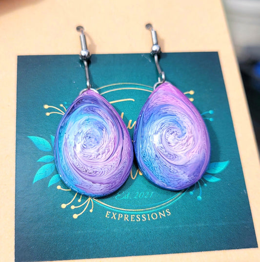 Handmade Resin Art Teardrop Stainless Steel Hook Earrings