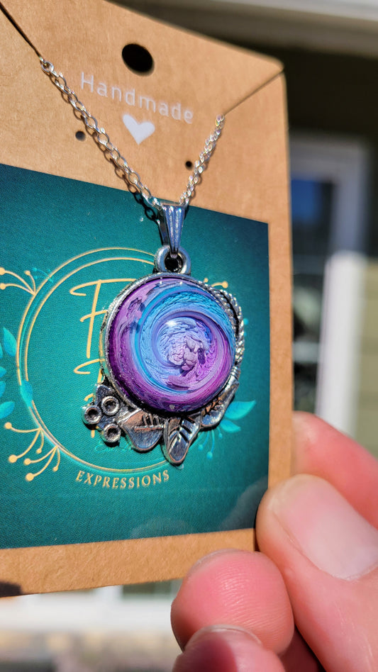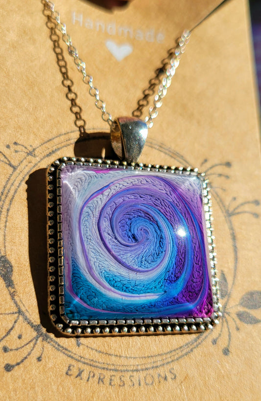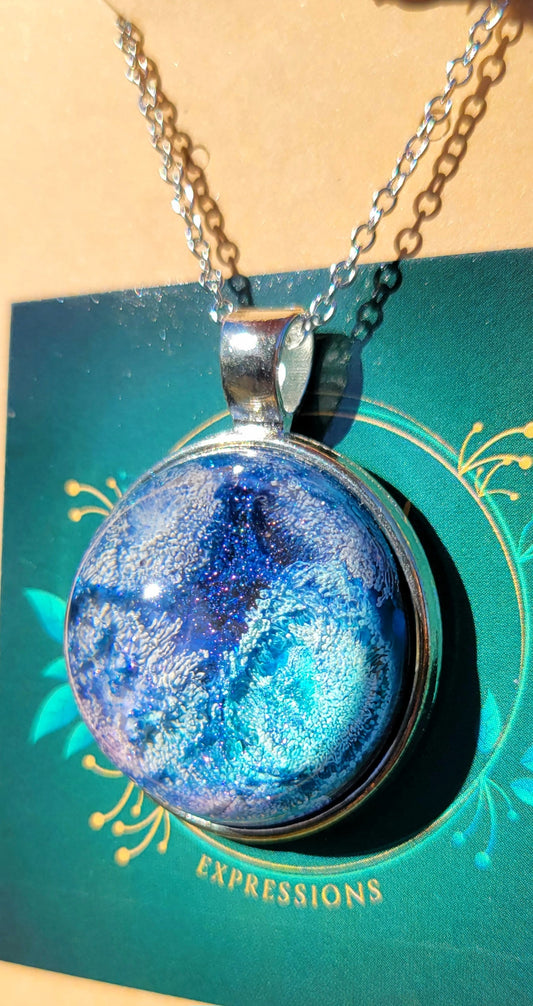 Handmade Resin Art Pendant with 20 inch silver plated necklace chain.