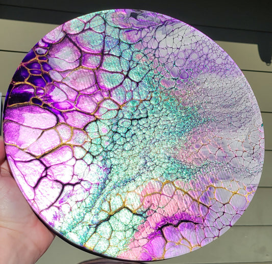 Original Fluid Art Painting with Shimmering Metallic shifting pigments.