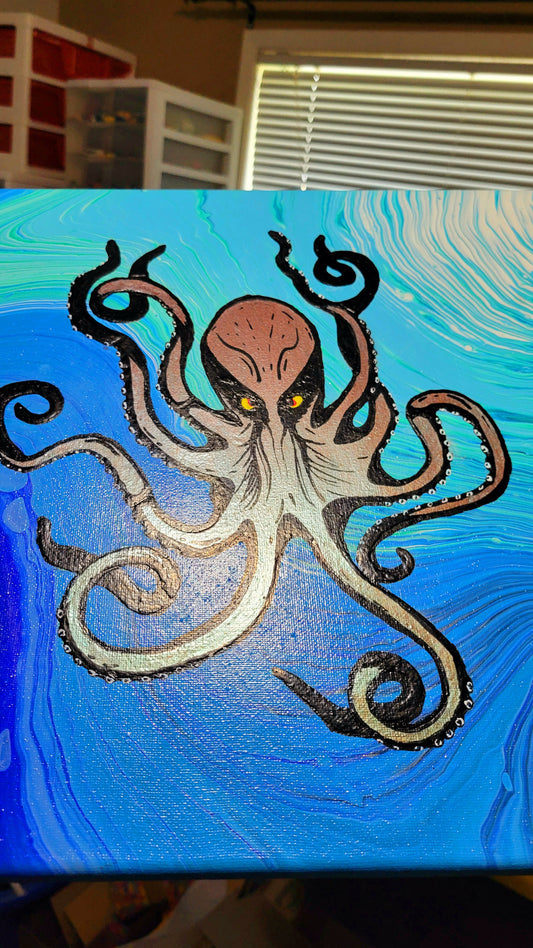 Original Fluid Art Octopus Painting 14x14 Inch Canvas