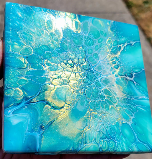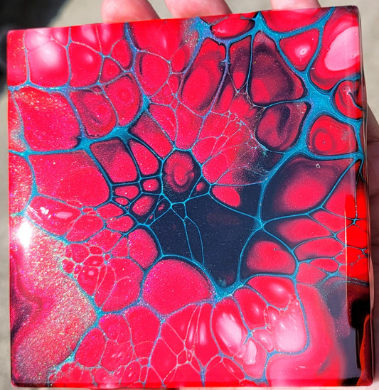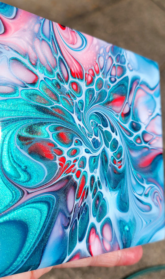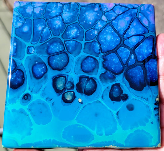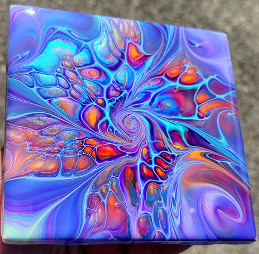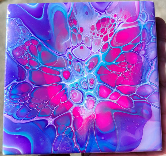 Fluid Art Bloom on a 4.25 inch Tile/Coaster with Cork Bottom