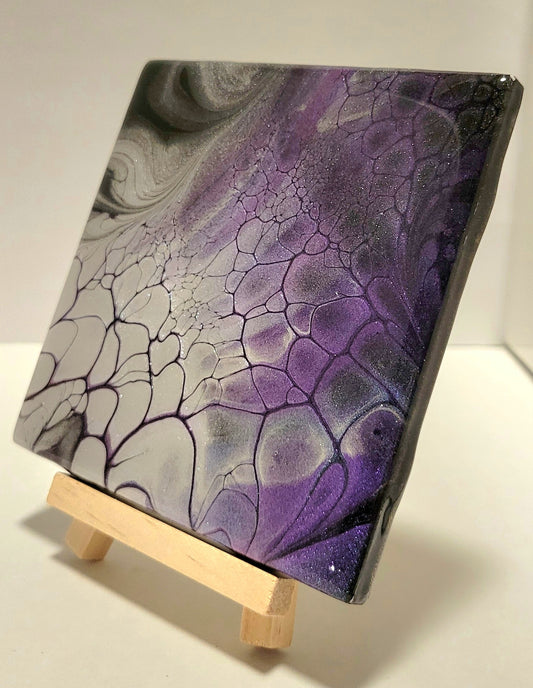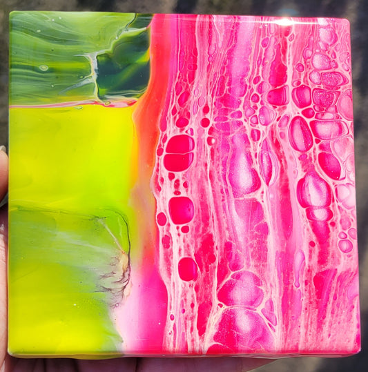 Fluid Art on 4.25 inch tile/Coaster with Cork Bottom