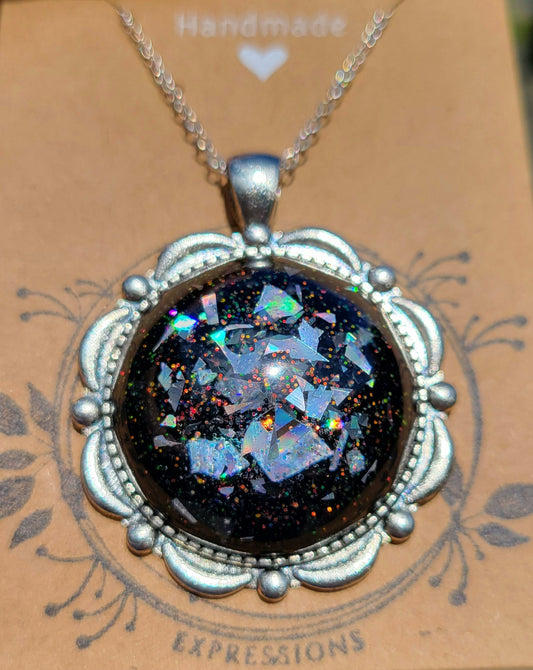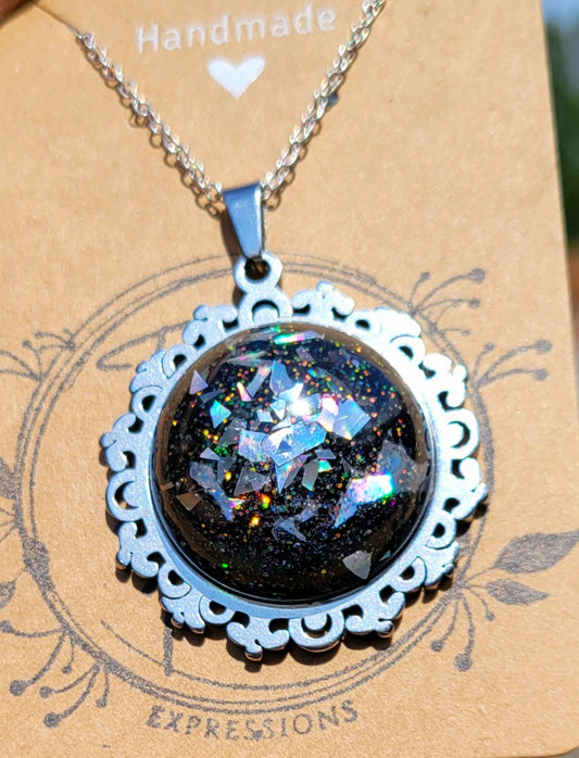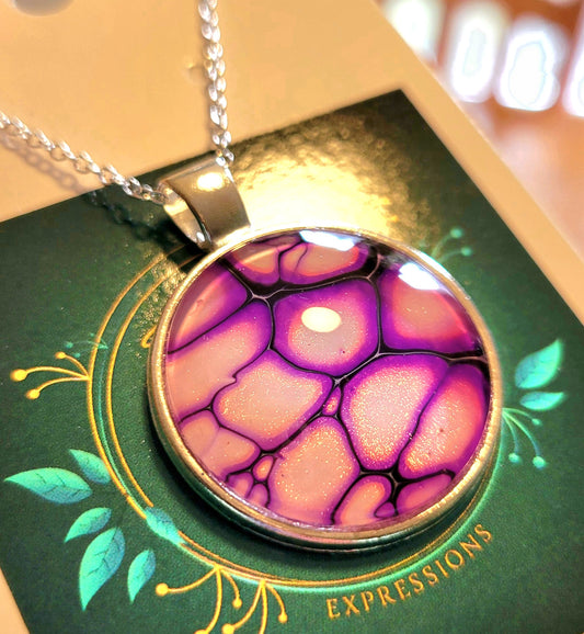 Handmade Resin Art Pendant with 20 inch silver plated necklace chain.