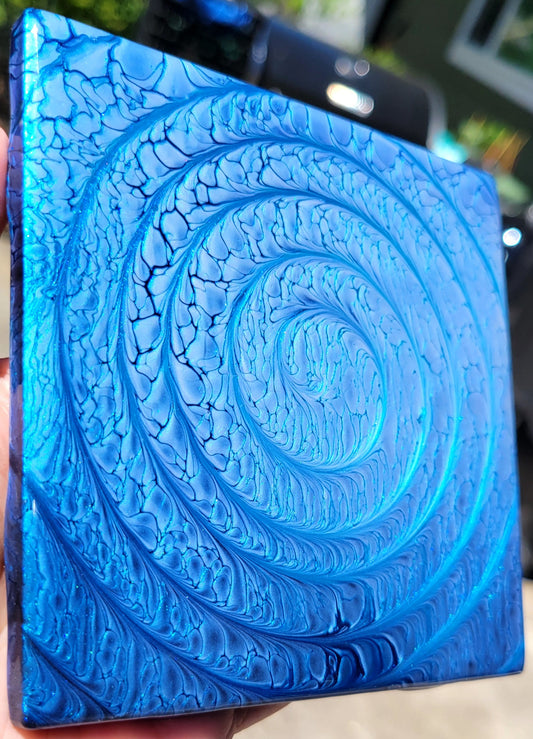 Fluid Art on a 6 Inch Tile with Metallic Colorshifting Pigments