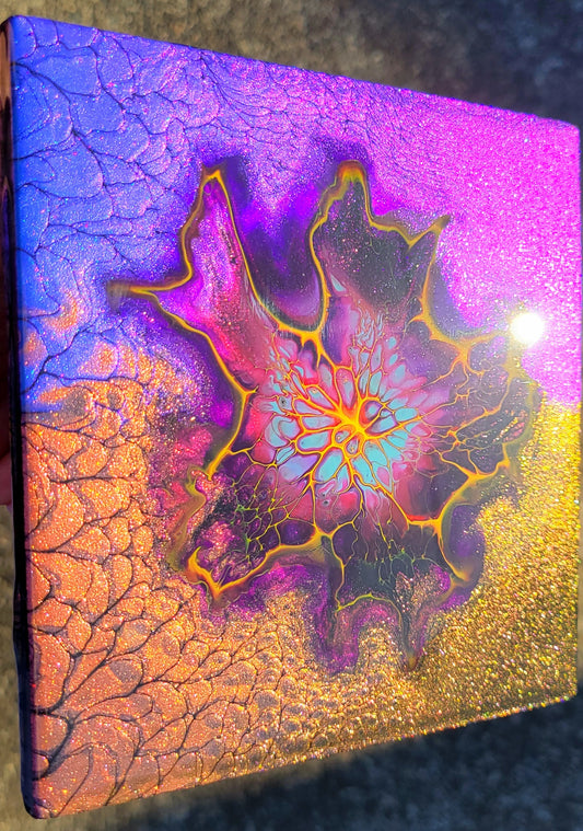 Fluid Art Bloom on a 4.25 inch Tile/Coaster with Cork Bottom