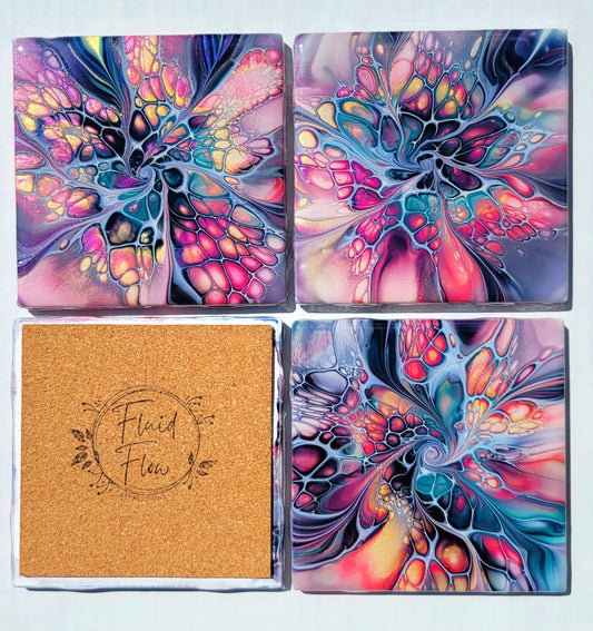 Fluid Art Bloom on 4.25 inch tile/Coaster with Cork Bottom