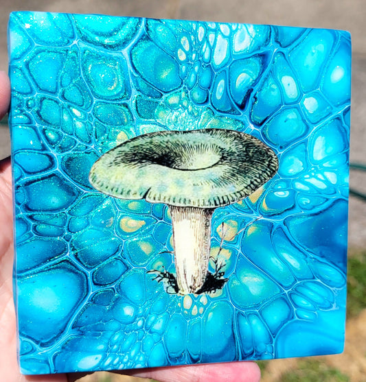 Fluid Art Bloom on a 4.25 inch Tile/Coaster with Cork Bottom