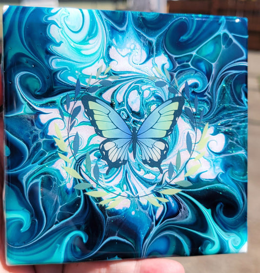 Beautifully handmade Acrylic fluid art coasters. Sealed in food grade epoxy resin. 4x4" inch tile with cork backing.