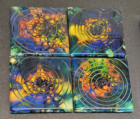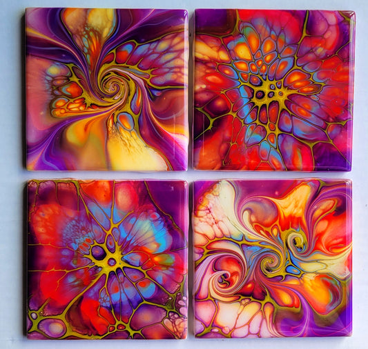 Handmade Set of 4 Fluid Art Coaster Tiles