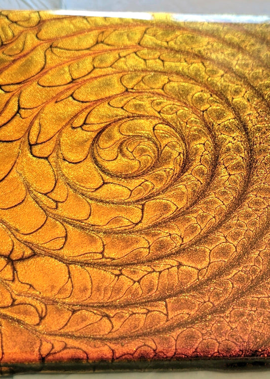 Each tile is uniquely crafted with a one of a kind never to be replicated design. We use the finest paints, pigments, and products to create the magic that makes these shift and sparkle while bringing a splash of color and happiness .
