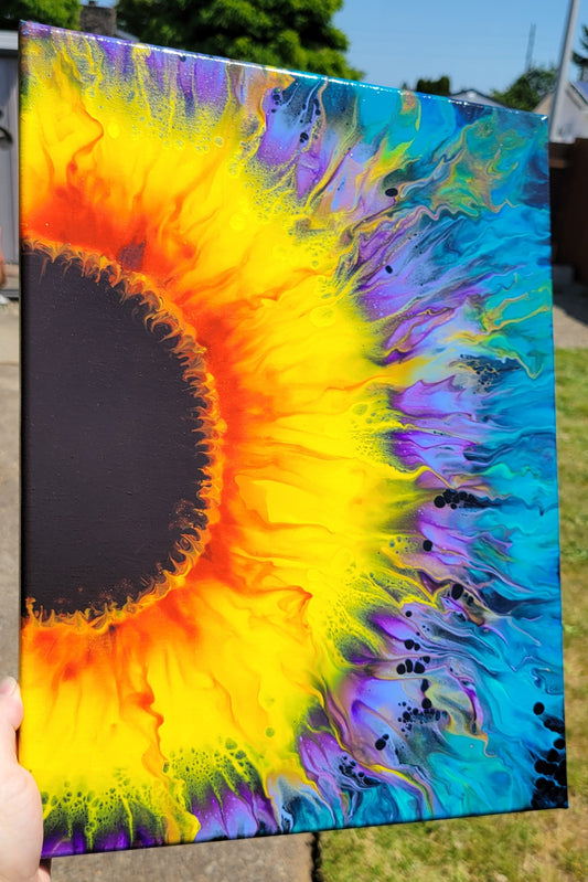 Original Fluid Art Sunflower Painting on a 12x16 inch canvas