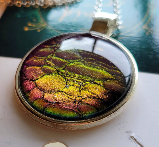 Handmade Fluid Art Colorshifting Pendant with 20 inch silver plated necklace chain