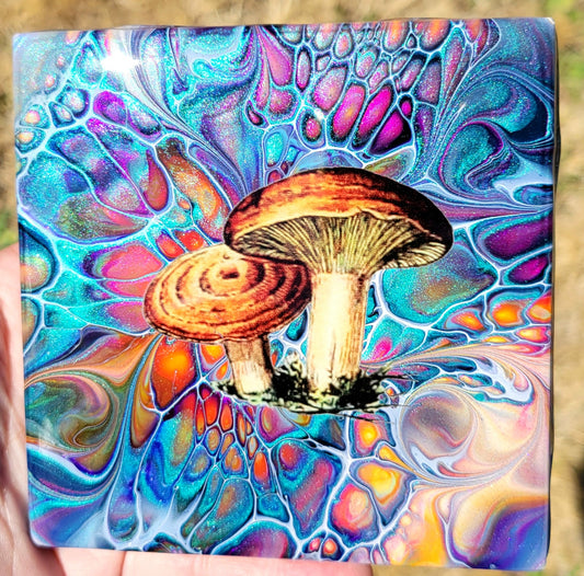 Fluid Art Bloom on 4.25 inch tile/Coaster with Cork Bottom