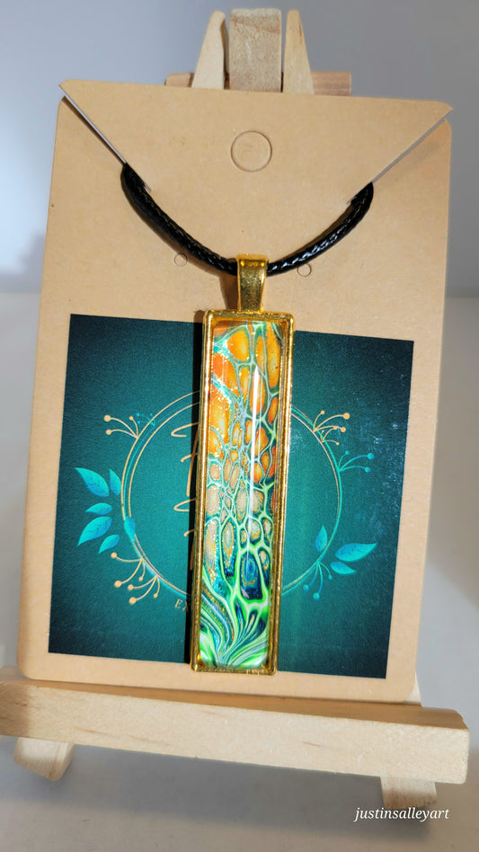 Handmade Resin Art Pendant with 18 inch silver plated necklace chain.