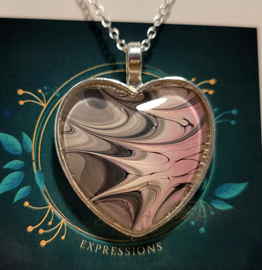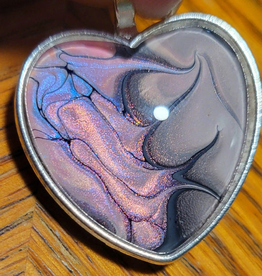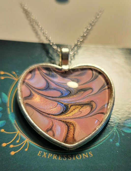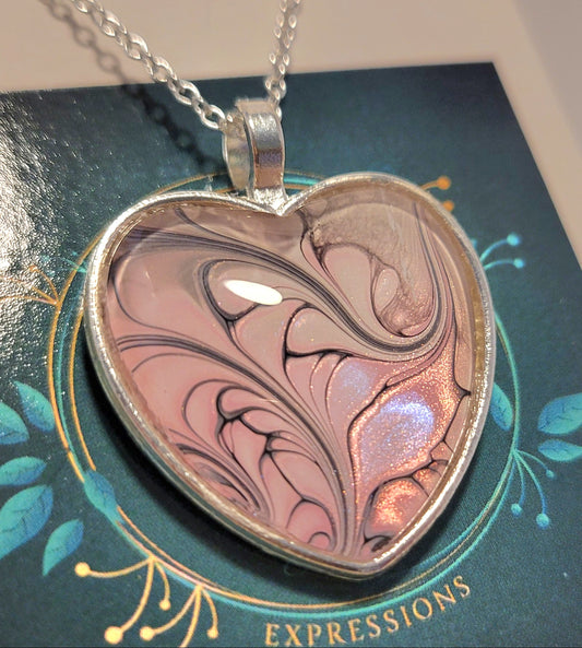 Handmade Fluid Art Heart Pendant with 20 inch Silver chain