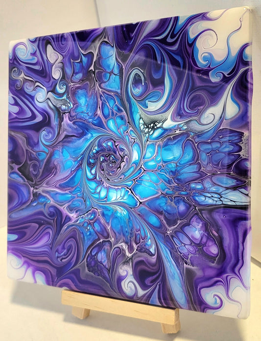 Fluid Art on a 6 inch tile/Coaster with Cork Bottom
