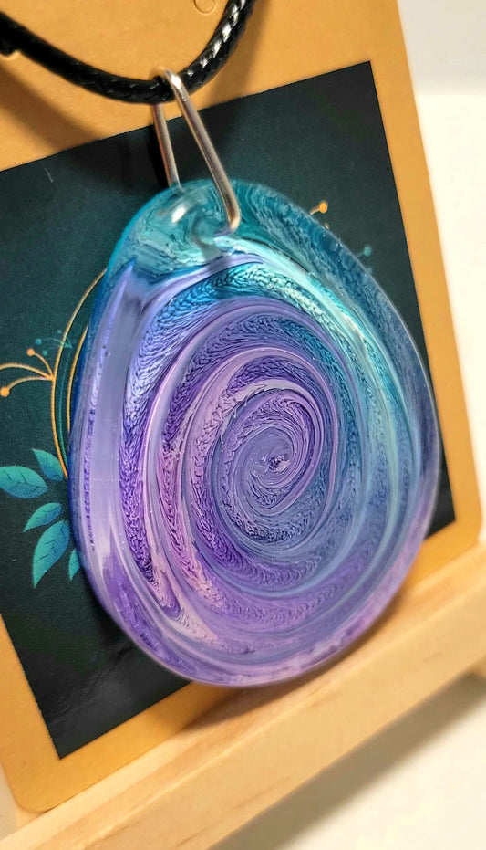 Handmade Resin Art 30x35mm Teardrop Pendant with 24" inch black leather rope chain