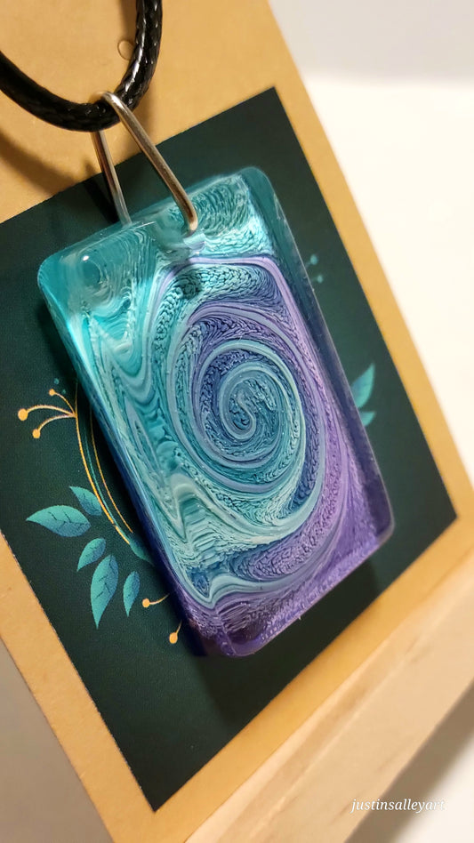 Handmade Resin Art 25x35mm Rectangle Pendant with 24" inch black leather rope chain