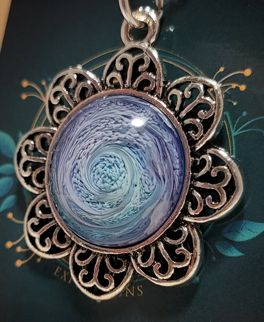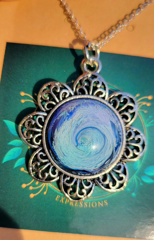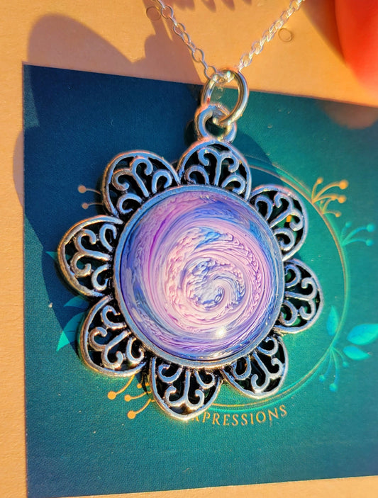 Handmade Resin Art Flower Pendant with 18" inch silver plated necklace chain.