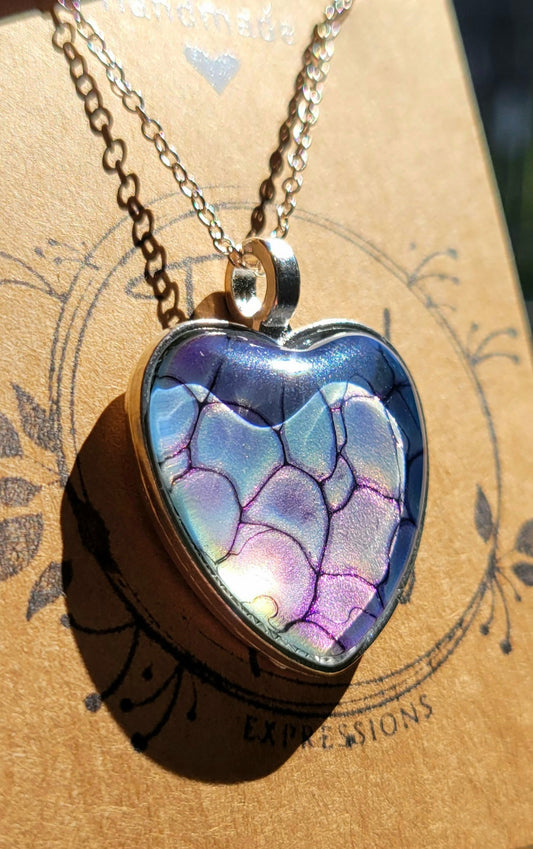 Handmade Fluid Art Colorshifting Heart Pendant with Silver Plated Necklace