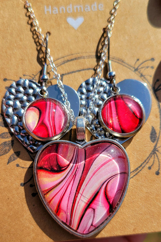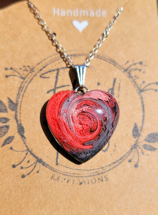 Handmade Resin Art Heart Pendant with 20 inch silver plated necklace chain