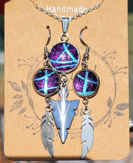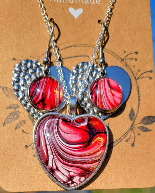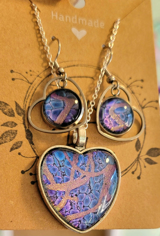 Handmade Fluid Art Earring and Necklace Set