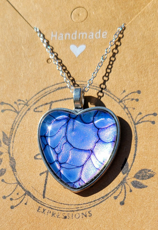Handmade Resin Art Heart Pendant with 20 inch Silver chain