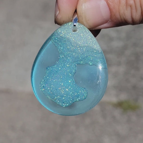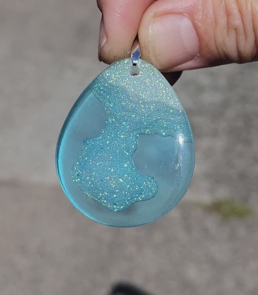 Handmade Resin art pendant on a 20 inch .925 silver plated necklace chain with lobster clasp.